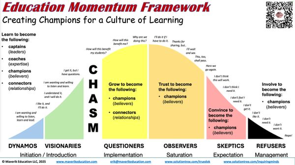 MAVERIK EDUCATION has developed the Education Momentum Framework to identify and create "champions" who will strengthen, support and sustain the a culture of learning that is standards driven and student supportive.